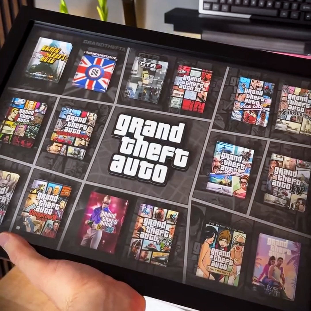 Relive the classics, collect the legends—this frame brings together the covers of all GTA games, capturing every adventure within. Whether you're a new player or a longtime fan, this is a rare collectible you won’t want to miss."